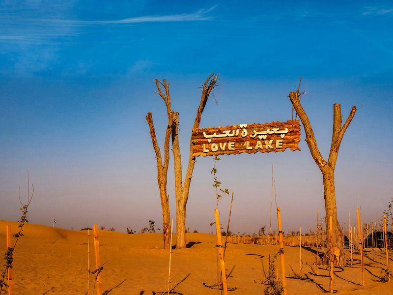 Love Lake is one of the most Instagram-popular hidden places in Dubai. The lake is two-heart-shaped and it is situated in the Al Qudra desert.